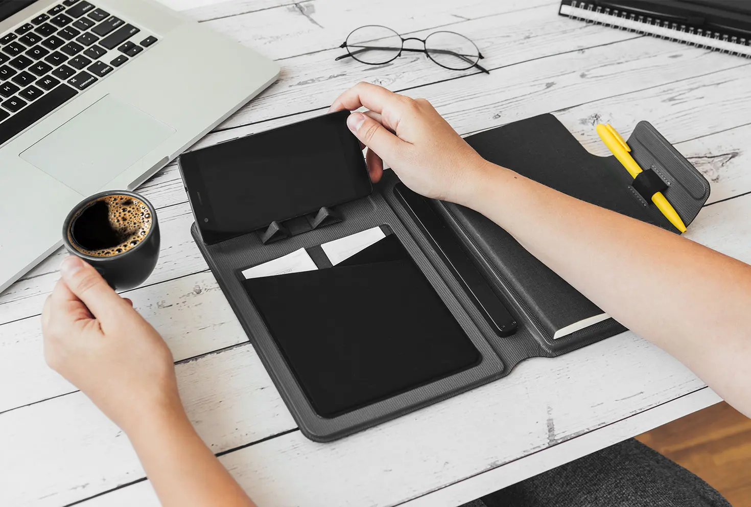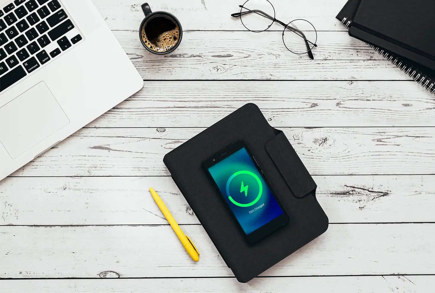 Portfolio sa notesom A5, pomoćnom baterijom 5.000 mAh i bežičnim punjenjem 15W