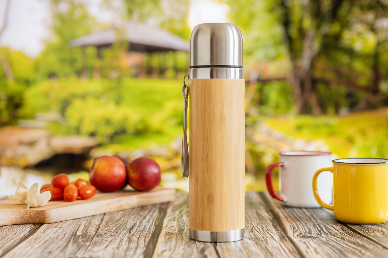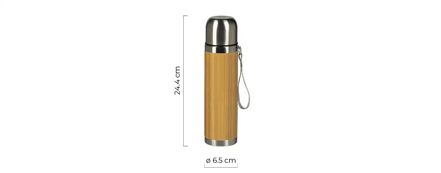 Materijal: nerđajući čelik/bambus Dimenzija: O 6.5 x 24.4 cm Pakovanje: 25/1 Preporučena štampa: laserska gravura