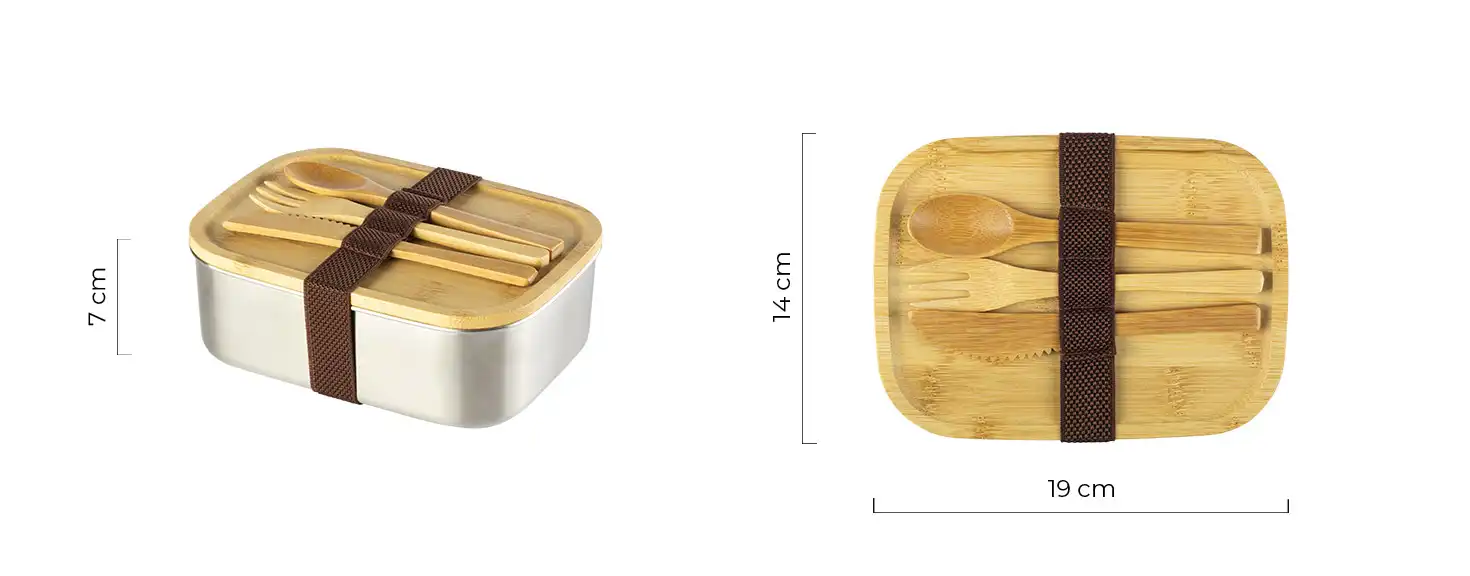 Materijal: nerđajući čelik/bambus Dimenzija: 19 x 14 x 7 cm Pakovanje: 30/1 Preporučena štampa: laserska gravura